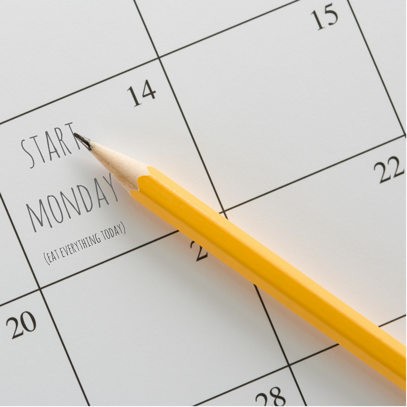 A healthy lifestyle is doing the best you can with what you have in any given moment. The "I'll start Monday" mentality gives you permission to binge over the weekend, but that isn't bringing you any closer to your goals. A better idea to decide on what treats you want to enjoy (indulgences are absolutely ok and encouraged) over the weekend and eat them in proper portions and frequency. Maybe you decide to eat healthy meals, but enjoy the ice cream as dessert. Or have an indulgence meal but eat slowly and stop eating when you feel 80% full. Or eat the hamburger but skip the fries (or just steal three from hubby's plate). Or eat a healthier version of the treat you crave. The most important thing is you are paying attention and making an effort to make healthier decisions, even in the smallest way. Even the smallest healthy decisions add up over time.