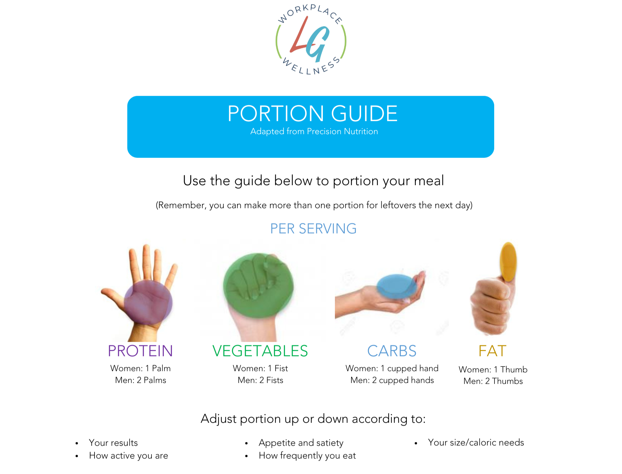 Most people don’t need to count calories, but you do need to pay attention to portion sizes. One easy way to do this for fats is to use your thumb as a guide. Think of a serving size as the size of your thumb when slicing an avocado or eating nuts.